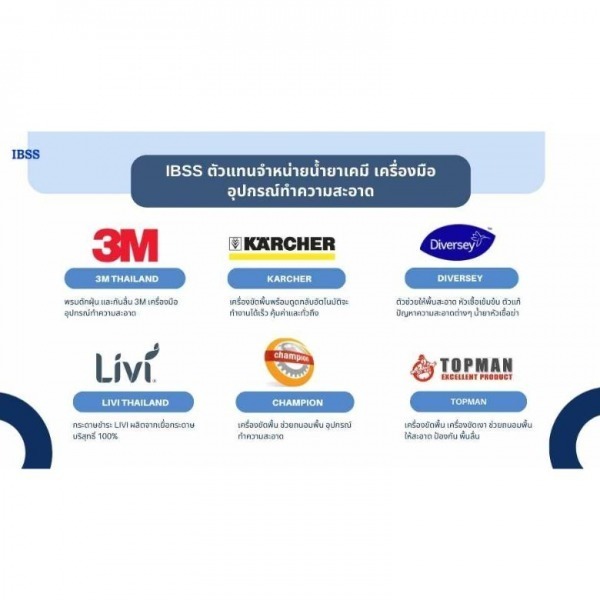 ตัวแทนจำหน่าย ผลิตภัณฑ์น้ำยาทำความสะอาด เคมีทำความสะอาด เครื่องมือและอุปกรณ์ทำความสะอาด ของใช้สำหรับงานทำความสะอาด